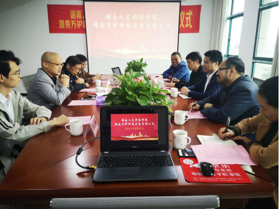 2019年10月23日,副校长周发明率校地校企合作处处长黎建辉、信息学院书记谭甲凡、研究生教育教学部副部长周丽华、硕士生导师易叶青等一行六人前往湖南万护科技发展有限公司考察,并在公司会议室举行校企合作签约、研究生校外实践基地签约及授牌仪式。