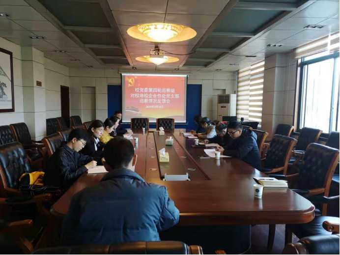 2021年3月12日上午,校党委第四轮巡察组向校地校企合作处党支部反馈巡察情况,校党委委员、纪委书记凌艳平出席会议。校党委第四轮巡察组组长刘纲华代表巡察组向校地校企合作处党支部反馈了巡察情况,黎建辉主持会议并就做好巡察整改工作作表态发言。
