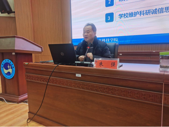 2021年12月29日下午,太阳成官网在匠成楼报告厅召开科研政策及学术诚信宣讲会。会议由校党委委员、副校长朱强主讲,科研处处长成运主持。各学院分管科研与校地校企合作的副院长、学科带头人、省级基地平台负责人、科研秘书、学科秘书、教师代表、科研处和校地校企合作处全体同志参加会议。
