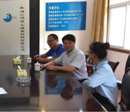 7月25日,周发明副校长来到株洲市炎陵县九龙工业区,深入校企合作企业株洲江钨博大硬面材料有限公司进行考察。
