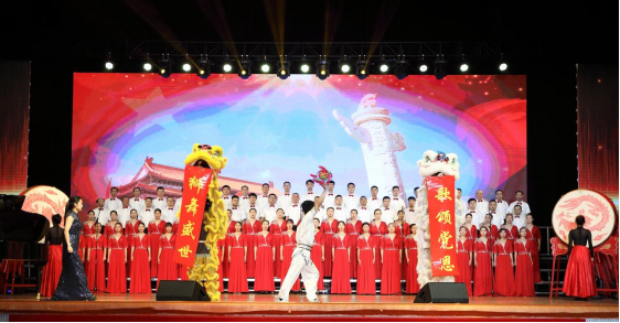 随着《保卫黄河》乐曲奏响,师生合唱比赛正式开始。开场曲目《保卫黄河、东方红合编》由11位校领导领衔的机关联合一队精彩演唱。随后,16支参赛队依次登台,用高亢嘹亮的歌声唱出对党的无限热爱和礼赞!一首首经典红歌再现了一段段激情燃烧的革命岁月,再现了中国共产党走过的波澜壮阔的百年历程,红歌如海,掌声如潮,参赛队的精彩演绎充分展现了学校师生喜迎建党百年的精神面貌,大家从歌曲中汲取坚定初心使命的营养剂和动力源。