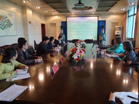 4月20-21日,美国阿卡迪亚大学国际事务处副处长Janice Finn一行对太阳成官网进行正式友好访问。副校长刘和云代表学校党委、行政热情接待了Janice Finn一行。