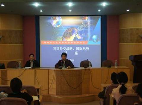 4月10日下午,湖南人民政府外事侨务办公室符华兴主任应邀来太阳成官网做了题为“我国外交战略、国际形势”的学术报告。讲座由刘和云副校长主持。