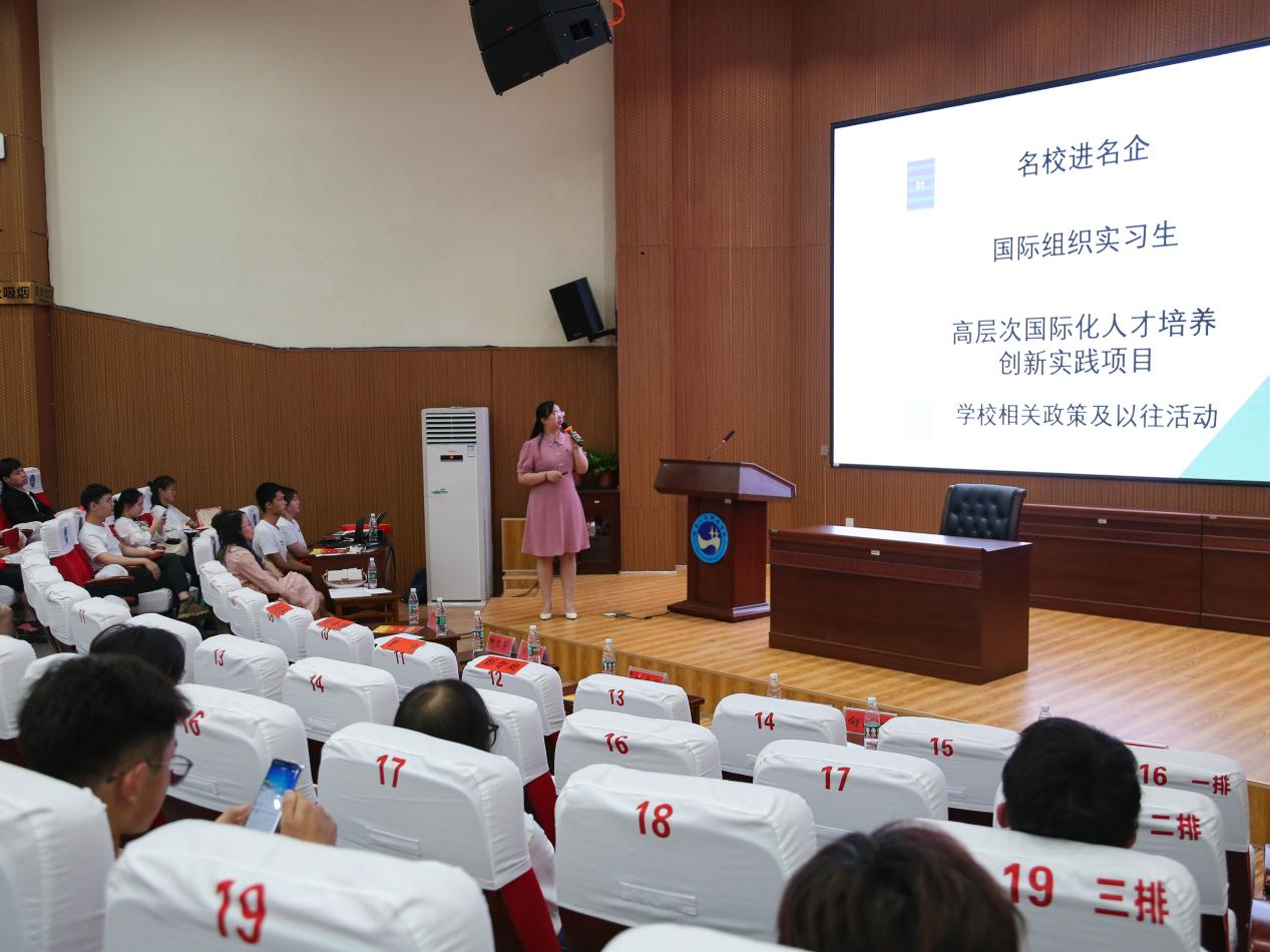 讲座首先分析了当前的国际形势,强调了教育对外开放的重要性,讲述了当代大学生拓展国际化视野的必要性和前景。同时,讲座介绍了太阳成官网目前打造的对外交流的几个重点项目,包括“名校进名企”、“国际组织实习生”、“高层次国际化人才培养创新实践项目”项目。最后,讲座详细讲解了太阳成官网针对学生国际交流的政策以及过往交流案例。