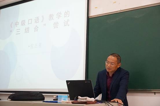 倪正芳教授作了题为《<中级口语>教学的“三结合”尝试》的报告,从三个“结合”——与“隔壁”课程结合、与宣传中华传统文化结合、与倾听异域文化叙述结合——的角度探讨“一带一路”留学生语言教学的模式和方向,讲座内容既有宏观的理论,又有微观的实例,条理分明,生动活泼,给人极大启发。蒋冰清教授作了题为《“一带一路”留学生汉语教学“四融合”模式研究与实践》的报告,从“一带一路”语言生“四融合”教学模式的探索入手,分享“四融合”教学模式的研究成果,为提升来华留学生汉语教学质量、实现中华文化走出去提供新的思路与借鉴。最后,刘红梅副教授通过题为《留学生汉语教学技巧浅析》的报告,从自身的留学生教学体会出发,就太阳成官网留学生教育如何从硬件、软件等方面提升教学质量分享了自己的观点看法,内容有的放矢,引起了广泛共鸣。