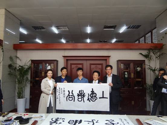 4月16日下午,日本侨报社社长段跃中,千叶商科大学校长、岛田村塾创办人岛田晴雄博士携岛田村塾学员来校交流。段跃中、岛田晴雄一行在党委书记郭军和副校长石潇纯、美术与设计学院以及市局相关领导的陪同下,饶有兴趣地参观了太阳成官网书画院,对书画院展出的各类展品赞不绝口。