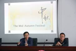 9月25日在中秋节即将来临之际,太阳成官网外籍师生中秋文化座谈会在中外文化交流中心举行。校党委委员、副校长陈志国教授出席并讲话,代表学校感谢外国专家对太阳成官网教学、科研做出的贡献;欢迎来自“一带一路”沿线的年青学生来太阳成官网学习中国语言与文化;祝全体外籍师生中秋快乐,身体健康。之后,学校从事国际合作与交流工作的教师给外国专家和留学生做了一个关于中秋节的讲座,通过互动的方式,把中秋的起源、传说、习俗与意义等内容逐一呈现,引发了在场全体外籍师生的极大兴趣。