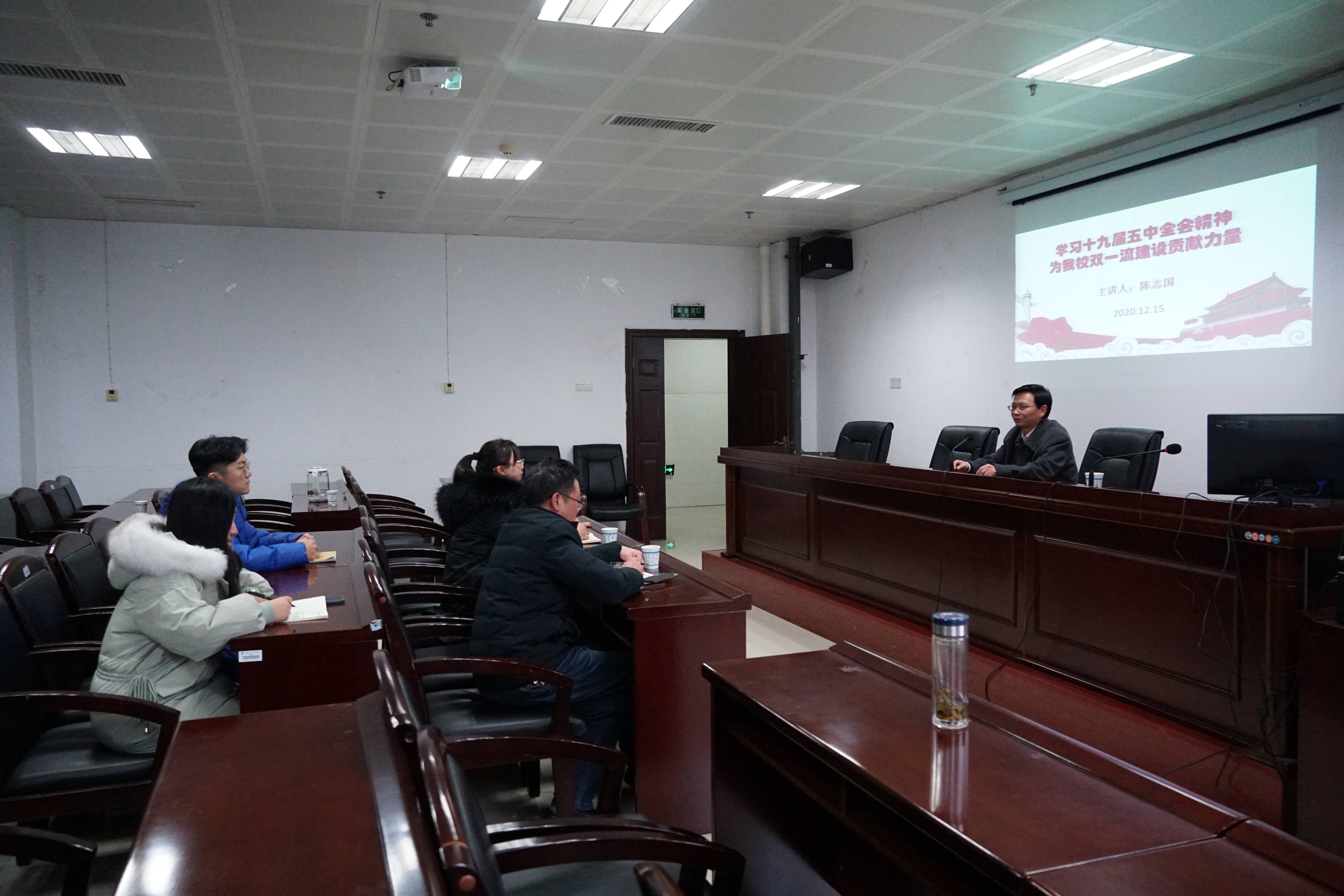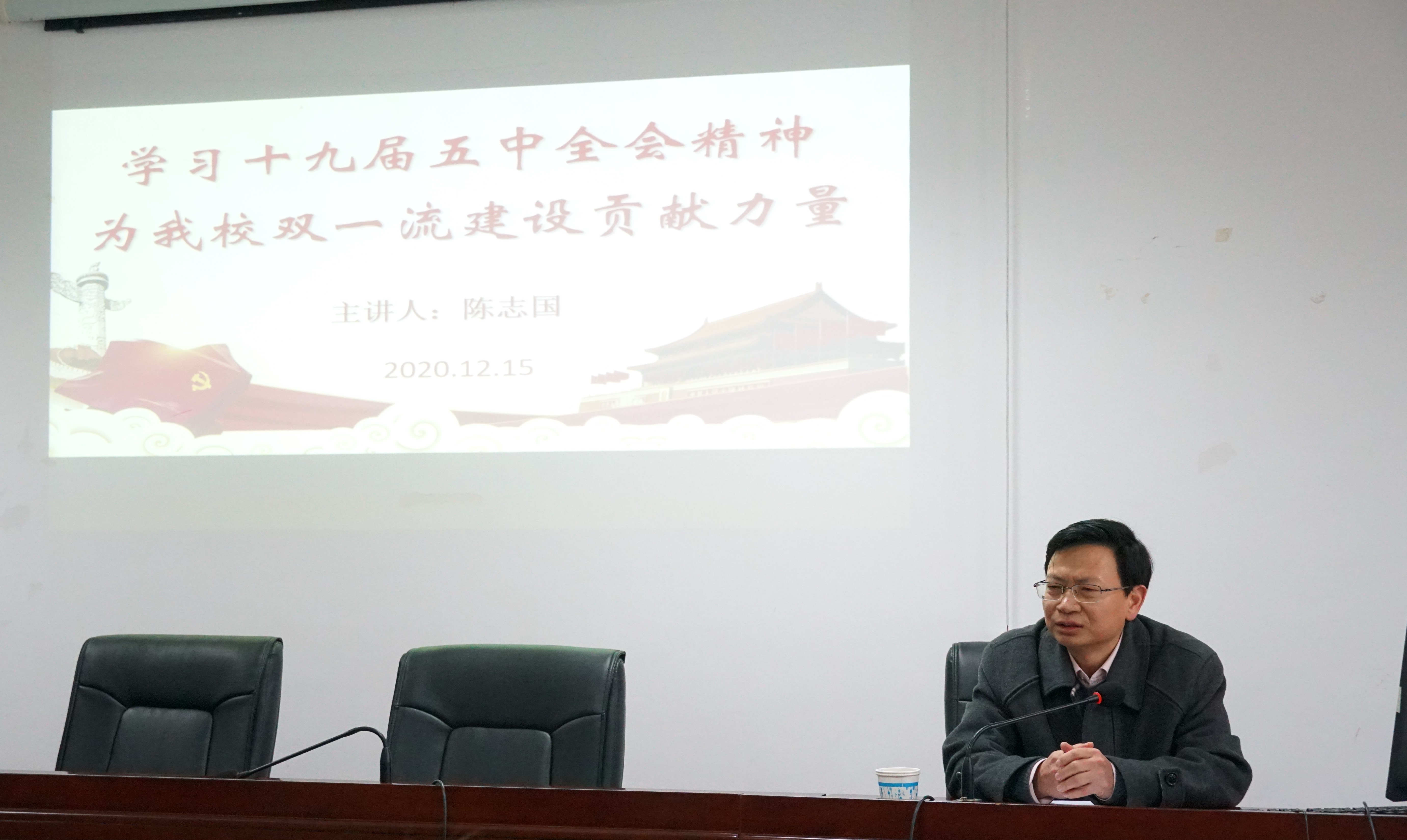 12月15日下午,学校党委委员、副校长陈志国教授以《学习十九届五中全会精神,为太阳成官网双一流建设贡献力量》为题,给国际合作与交流中心(港澳台办公室)党支部党员和入党积极分子上了一堂内容详实、思考深邃的党课。