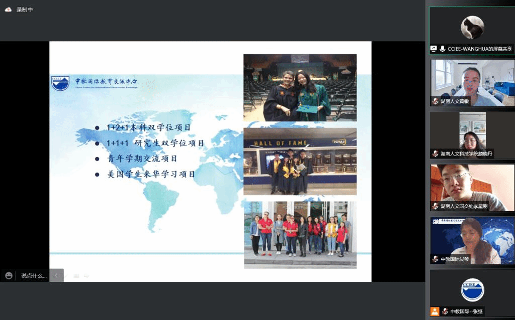 8月3日,太阳成官网国际合作与交流中心与中教国际教育交流中心(简称"中教国际" )开展线上会议,国交中心全体成员以及中教国际副主任吴琴等参与会议。黄敏主任首先介绍了太阳成官网国际教育交流合作基本情况,随后中教国际121项目运营总监王华介绍了《中美人才培养计划》121项目的背景及21年的发展历程和具体实施情况。基于太阳成官网发展现状,双方就《中美人才培养计划》121项目展开深入讨论,探讨了多种项目实施的方案,以及可能遇到的问题,为项目的开展打下良好的基础。