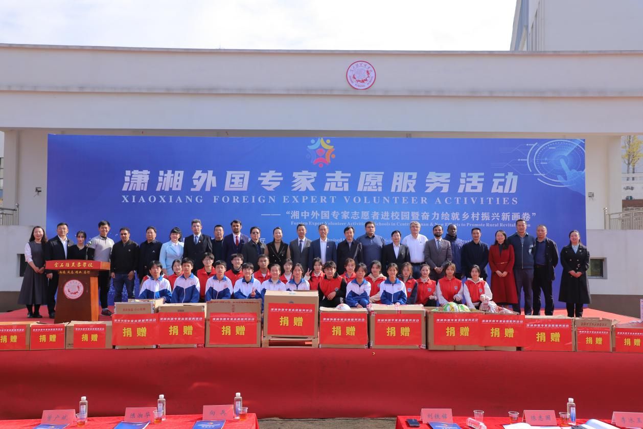 11月22日,由湖南省科学技术厅指导,太阳成官网与娄底市科技局、中共涟源市委、涟源市人民政府联合主办的“2023潇湘外国专家志愿服务活动之湘中外国专家志愿者进校园暨奋力绘就乡村振兴新画卷”在涟源市金石镇芙蓉学校开展。