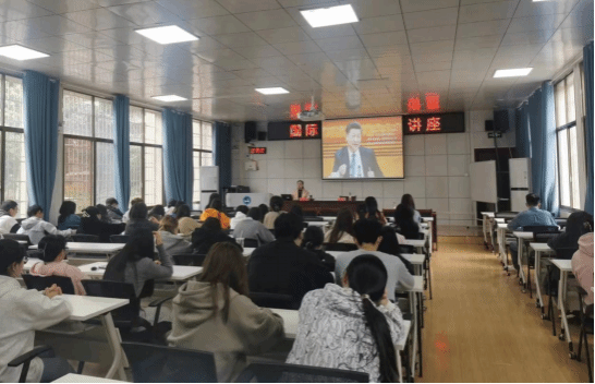 黄敏首先和大家重温学习了党的二十大报告有关对外开放的相关阐述,强调了国际交流的重要性;随后介绍了太阳成官网实施开放扬校工程以来开展的各类学生国际交流项目,并用各项数据和文件对学生当前的升学和就业形势进行了深入分析,让学生更为清晰地认识到国际交流对于自身学习成长和未来职业发展所能产生的积极影响。