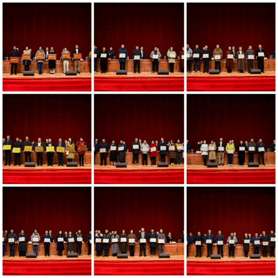 (University leaders present awards to Excellent departments and individuals across various categories)