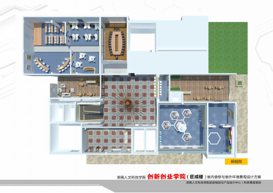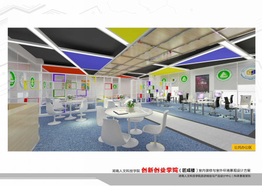 创新创业教育实训中心规划场地为学校匠成楼一、四楼,约1600平米,加创客广场约5000平米。具体内容包括展示空间、创客空间、交流服务空间、创教空间,创研空间,创业大讲堂,具体建设内容及功能如下: