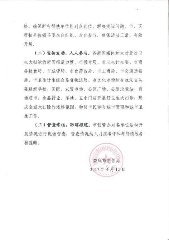二、请各单位、各部门负责人做好本次大扫除的组织、督促督查工作,切实保证本次专项卫生大扫除活动取得好的成效。