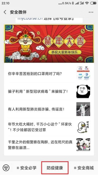 2.关注微信公众号“安全微伴”进入“防疫健康”栏目