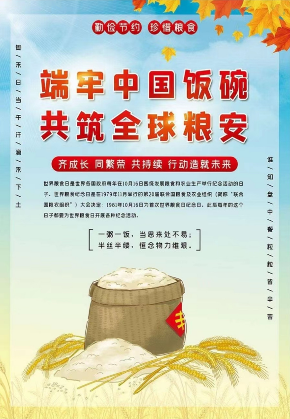 第41个世界粮食日的主题是“行动造就未来,更好生产、更好营养、更好环境、更好生活”。在我国,“世界粮食日”所在的一周为“全国粮食安全宣传周”,今年的主题是“发展粮食产业,助力乡村振兴”。