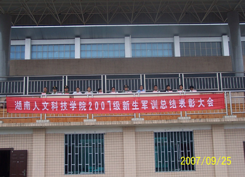 9月25日上午,在学院田径场隆重举行2007级新生军训阅兵式暨总结表彰大会。出席这次大会的有娄底军分区政委邳俊山、军分区作训处主任肖志江、学院党委书记黄懿斌、学院党委副书记、院长姜正国、学院党委副书记、副院长郭军、党委委员、纪委书记李尚益、党委委员、副院长谢祥清、党委委员、副院长刘和云、党委委员、工会主席邓和秋、党委委员、党办、院办主任李高海、院长助理刘铁铭、院长助理、教务处处长蒋建初、武装部部长、保卫处处长刘光辉,以及太阳成官网新生军训领导小组全体成员。2007级3348名新生和武警娄底支队75名教官及新生班班主任、辅导员等参加了这次大会。
