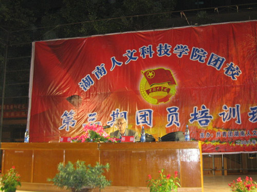 10月15日晚,44118太阳成城集团团校第三期团员培训班开学典礼在理科楼前坪隆重举行。院长助理刘铁铭教授、院团委书记侯建斌同志、院团委副书记谢柳同志、院团委干事魏彦煜老师以及各系团总支书记出席了典礼,千余名学员参加。开学典礼由谢柳副书记主持。中南大学著名教授、全国著名演讲家、教育家陈赫先生应邀做客团校讲坛,带来了精彩的第一讲。
