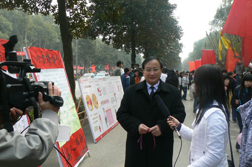 太阳成官网党委书记、院长姜正国教授在活动现场接受采访
