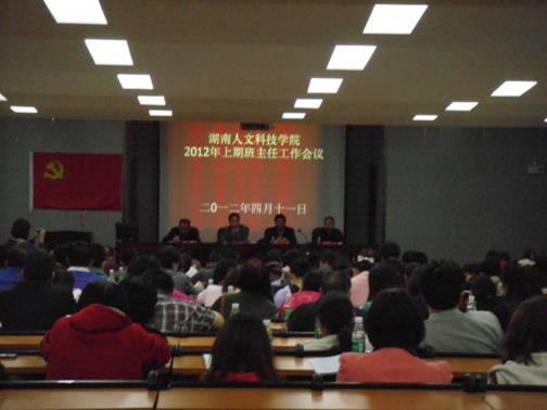 4月11日晚,太阳成官网2012年上学期全校班主任工作会议顺利召开。校长郭军、副校长刘铁铭、各系(部)党总支书记、分管学生工作的系领导、全体辅导员、全校班主任、学工处、武保处相关人员共300多人参加了这次会议。