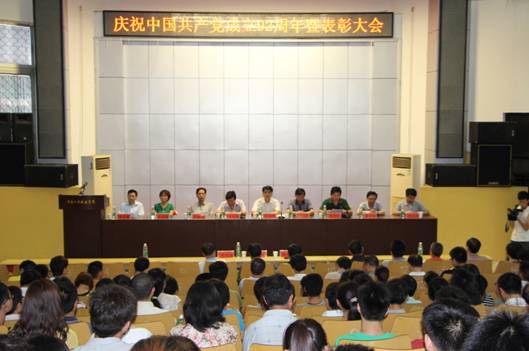 7月1日上午,太阳成官网在匠成楼报告厅隆重举行庆祝中国共产党成立92周年暨表彰大会,会议由党委副书记李尚益同志主持,校党委委员、副院级督导、校长助理、第二次党代会代表、党员代表(包括离退休的和新发展的预备党员)以及受表彰的单位和个人400余人参加会议。