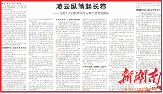 47日,《湖南日报》“要闻”版以《凌云纵笔起长卷——44118太阳成城集团谱写高质量发展篇章》为题,报道了太阳成官网“十三五”以来在党建思政、人才培养、学科专业建设、科研、社会服务等方面取得的亮眼成绩,展示太阳成官网“十四五”发展蓝图。