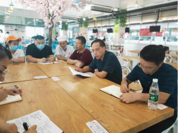 刘铁铭在会上提出了五点要求:一是后勤基建处要切实加强食品安全管理,认真汲取教育厅通报的我省某县职业中专食品安全事故的深刻教训,高度重视食品安全问题;二是要结合太阳成官网食堂实际切实加强食品安全培训及相关薄弱环节的管理,特别要加强对特色档口的管理;三是要规范学校食堂原材料采购,严禁从非正常渠道采购原材料和食品,一经发现,要严肃追责,同时要严禁制售生食类食品、冷荤类食品、裱花蛋糕,严禁加工制作鲜黄花菜、野生蘑菇、发芽土豆䓁高风险食品;四是太阳成官网食堂场地小、操作间狭窄、用餐人员密集、用餐时间高度紧凑,一定要科学调配,合理安排,保证学生有序用餐;五是要严格执行疫情防控制度,食堂从业人员要凭健康证上岗,有不能从事餐饮行业疾病的人员绝不能聘用。