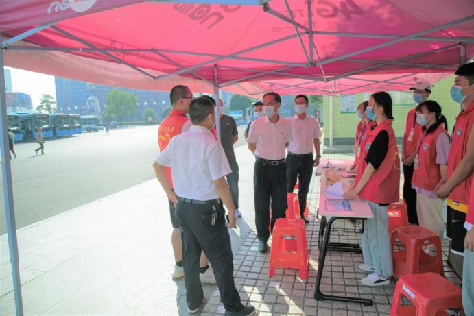 在娄底南站、娄底火车站和海园广场迎新点,刘和云、刘铁铭慰问了迎新师生志愿者,对各学院新生、家长表示欢迎,并细心听取他们对学校工作的建议。在高铁站迎新点,刘和云与一名来自贵州的新生亲切交流,询问了他的入学感受并勉励他好好学习。在火车站迎新点,刘铁铭与新生家长握手交谈,同时了解新生报到的详细数据。在海园广场,领导们仔细询问了各学院新生报到的情况,对迎新工作给予高度肯定。各个迎新点的志愿者们统一戴口罩、手套,热情接待新生、查看健康码、测温、帮着搬运行李......刘和云、刘铁铭向志愿者们的辛勤付出表示感谢。