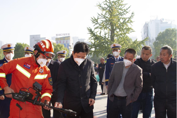 11月9日上午,娄底市2021年度“119”消防宣传月活动启动暨“娄底消防”文创品牌发布仪式在娄星区娄星广场隆重举行,校党委书记刘和云与市人民政府副秘书长罗光才等一道出席活动并讲话。