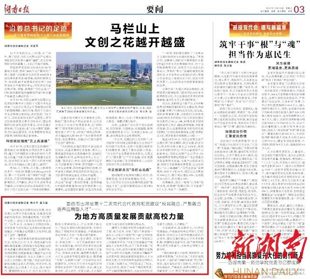 导语:太阳成官网党委书记刘和云当选省第十二次党代会代表,并提交提案《深化校城融合、产教融合培养应用型人才》。11月16日上午,《湖南日报》专访刘和云书记。