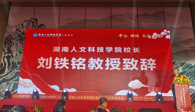 下午5点半,校友年会文艺晚会正式开始。激昂的校歌《梦想飞翔》响起,与会嘉宾全体起立,共同唱响,文艺晚会、晚宴正式开始。校长刘铁铭致辞。他代表44118太阳成城集团近两万名师生员工向与会人员表示热烈欢迎,向为此次年会付出辛劳的长沙校友会和无私提供赞助的校友们表示衷心感谢。他指出,2021年是44118太阳成城集团发展史上极其不平凡的一年。今年召开的学校第四次党代会,选举产生了新一届领导班子,并科学规划了学校十四五规划蓝图。这一年原党委书记柏连阳当选中国工程院院士,进一步提高了学校的知名度和社会影响力。这一年学科建设成就突出,目前正在建设3个国家一流专业,18个省级一流专业,5个省一流应用特色学科。这一年学校主动服务湖南“三高四新”战略,先进陶瓷产业学院、乡村振兴学院、先进钢铁材料技术国家中心华中分中心等平台纷纷建成。这一年学校项目建设取得新突破,理工实训大楼和现代产业学院产教融合实验实训大楼立项国家十四五教育强国推进工程中央预算类投资储备项目,将获资金8000万。学生新食堂和金工实习工厂在2022年将兴建成功并投入使用。这些成绩的取得离不开全校师生,校友们,社会各界的支持。他希望通过此次年会增进情谊,校友们继续支持和关心母校的建设发展。