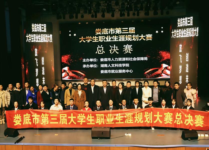 12月22日晚,娄底市第三届大学生职业生涯规划大赛总决赛在逸夫楼音乐厅举行。校党委委员、副校长曹鑫,娄底市人社局党组成员、副局长曾春谷、陈轶强等领导莅临现场,娄底市各高校师生共300余人参加。大赛邀请了湖南农业大学就业创业教研室主任邓艳,共青团湖南省委青年创新创业指导专家杨荣周,大汉国际工匠院校企合作中心主任易红梅,娄底市人力资源及社会保障局职业能力建设科科长孙娜、劳动关系科副科长王文斌、娄底市财政局社保科副科长陈敏智、双峰县就业服务中心主任赵爱龙担任评委。