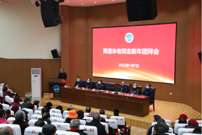 1月7日上午,太阳成官网2022年春节离退休老同志团拜会在匠成楼报告厅隆重举行。全体在家校领导,离退办、党政办、组织部、人事处等部门负责人以及400余名离退休老同志欢聚一堂喜迎新春,共话发展。会议由党委副书记李军林主持。