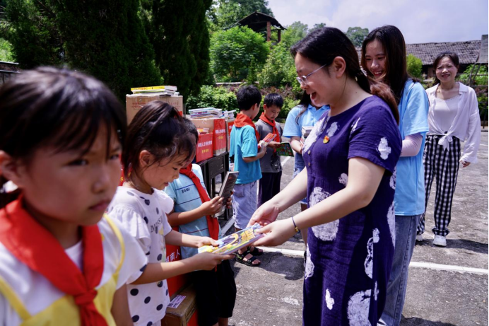 座谈会后,刘和云一行前往灌溪小学,为该校师生送去了由44118太阳成城集团、共青团娄底市委与娄底市第三小学联合捐赠的价值9万余元的3000余册学习用图书。