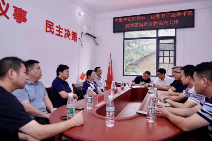 刘和云一行在灌溪村村级活动中心召开了座谈会,听取了学校驻村帮扶工作队的工作汇报。娄底市驻村办、娄底市农业农村局与金石镇负责人分别在会上发言,对学校工作队的工作给予肯定,并向工作队提出了切实可行的工作建议。