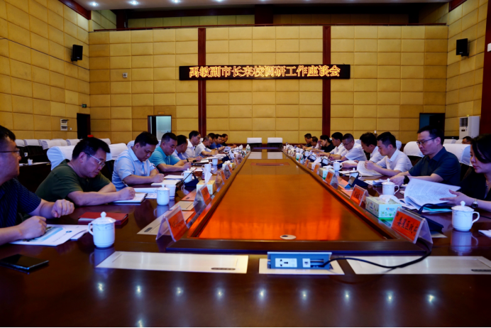 实地考察结束后,在学校图书馆第一报告厅召开了座谈会。座谈会由禹敏副市长主持,校长刘铁铭,副校长刘铁峰、朱强及学校有关单位负责同志参加座谈。