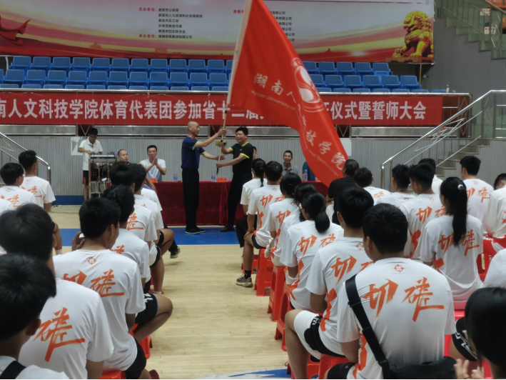 仪式最后,刘和云代表学校授旗,刘玉江接旗。(一审:刘晓杰;二审:刘玉江;三审:蒋毅)