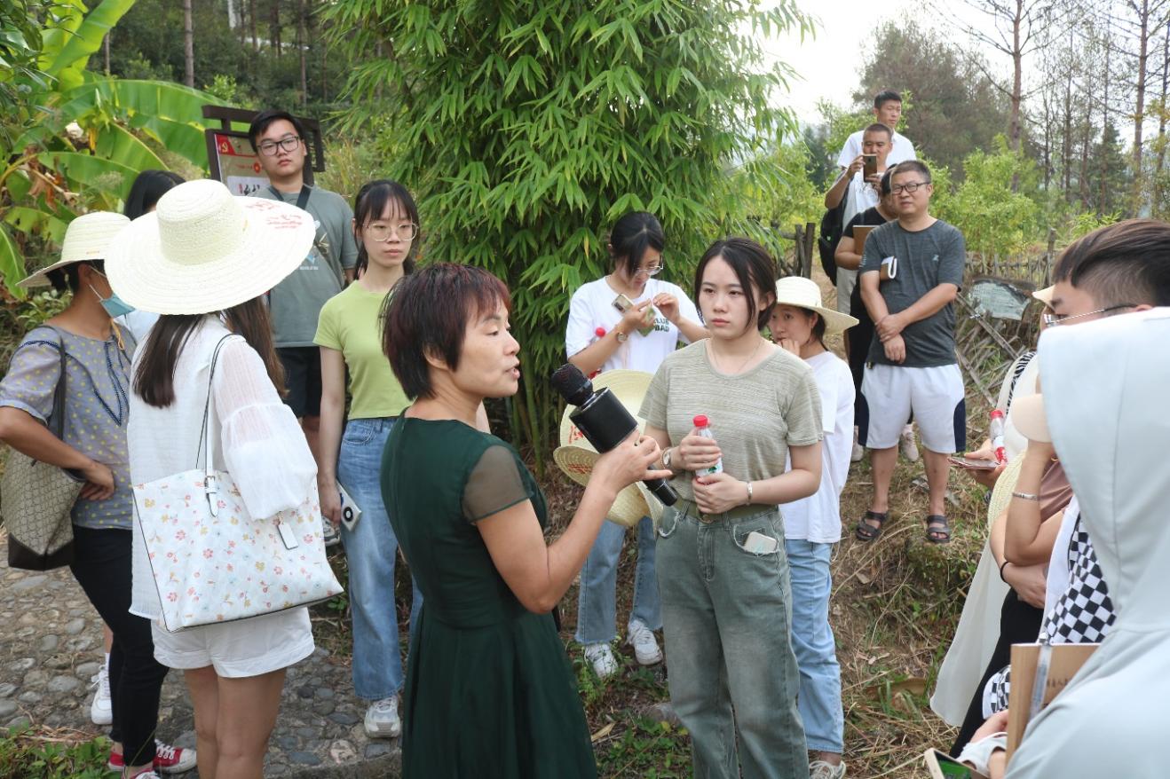 在油溪桥村水果种植基地,研究生教育教学部副主任周丽华给同学们分享常规植物辨认方法,讲述了农业科研领域前辈们饱含三农情怀的创业故事,并和同学们探讨现代农业产业的发展方向,引导同学们深入思考运用所学知识,关注“三农”事业发展,为国家乡村振兴战略实施添砖加瓦。