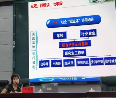 周丽华从研究生的课程教学、专业实践以及学术论文等方面解读研究生教育教学管理制度,并详细讲解太阳成官网硕士研究生“校企协同、双导多师、项目承载、多岗实践”的人才培养模式,实施“三双、四模块、七学段”的人才培养方案。