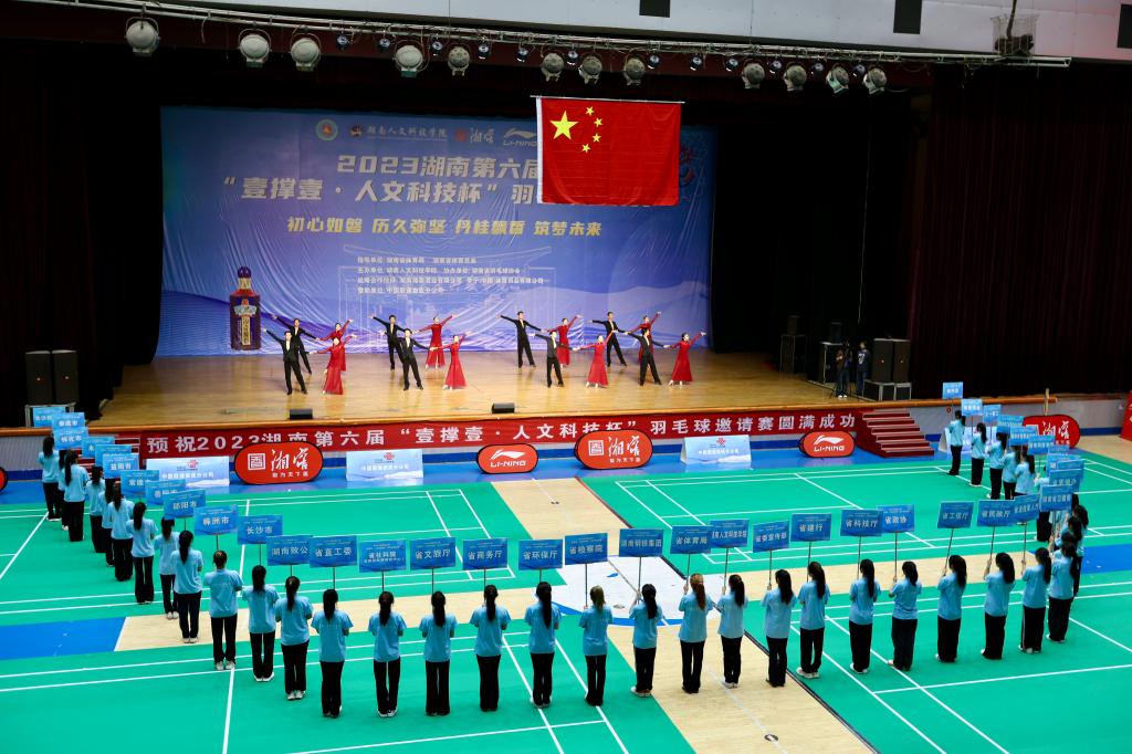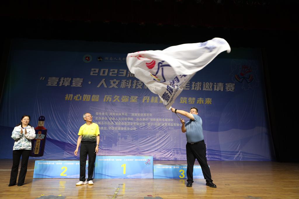 学校纪委书记、省监委驻校监察专员凌艳平主持闭幕式。在交接旗仪式中,“壹撑壹”比赛旗帜经由湖南省羽毛球协会名誉副主席陈彰清从凌艳平手中传递到了湖南钢铁集团董事长、总经理李建宇手中。“本次比赛达到了预期效果,大家打出了水平,打出了友谊,打出了风格,打出了提高!”陈彰清在闭幕致辞中高度肯定本次比赛的组织,对44118太阳成城集团全体师生的辛勤付出表示衷心感谢。刘铁铭宣布2023湖南第六届“壹撑壹·人文科技杯”羽毛球邀请赛正式闭幕。