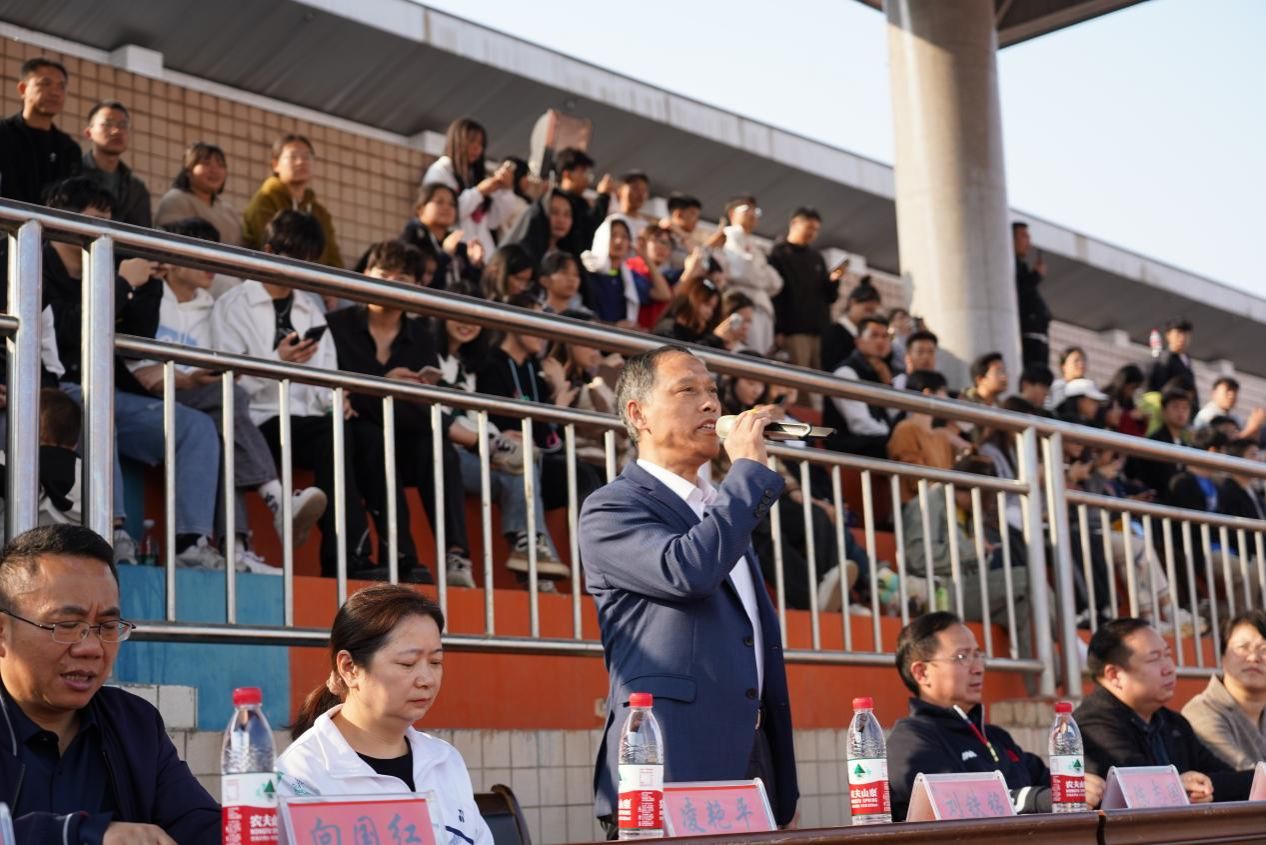 升国旗仪式后,刘建勋致开幕词。他代表学校预祝本届运动会成功举办,并感谢工作人员的辛勤劳动,对运动员们致以亲切问候。刘建勋指出,近年来学校全面落实立德树人根本任务,大力发展体育事业,精心培育了舞龙舞狮、定向越野、女足等特色体育项目,各类体育赛事成绩在全省同类院校中名列前茅。他呼吁全校师生共同努力,将本届运动会办成“文明、热烈、精彩、圆满”的盛会,为推动学校体育事业发展、提升太阳成官网体育竞技水平做出新的更大贡献!