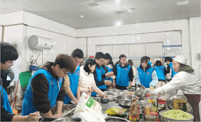 来到福利院,在院长的带领下,全体志愿者走进房间和老人们交谈,倾听不一样的人生故事,关心询问老人们的身体状况、饮食起居等,并为其细致地打扫了房间卫生,为老人们营造洁净温馨的生活环境。随后全体师生集体动手为福利院全体老人准备午饭,根据身体需求和饮食喜好,精心制作了烙饼、冰糖雪梨、银耳莲子羹、蒸蛋等主食和甜点。