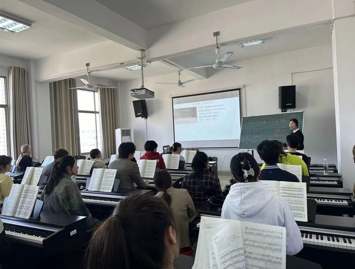 为进一步加强学科专业建设,发挥优质教学课堂示范引领作用,提升应用型人才培养质量,音乐舞蹈学院于3月28日上午在逸音楼举办校级公开课。本次公开课由钢琴教研室刘玲博士主讲,主讲课程为《基础钢琴(二)》,教务处副处长王志和,以教学督导团团长李夫泽教授为代表的十余位督导教授们,音乐舞蹈学院副院长吴扎拉涛博士,副书记邓莉立、钢琴教研室主任李歆博士、谭立琴副教授、钢琴教研室全体老师及各二级学院教师代表参加此次公开课。