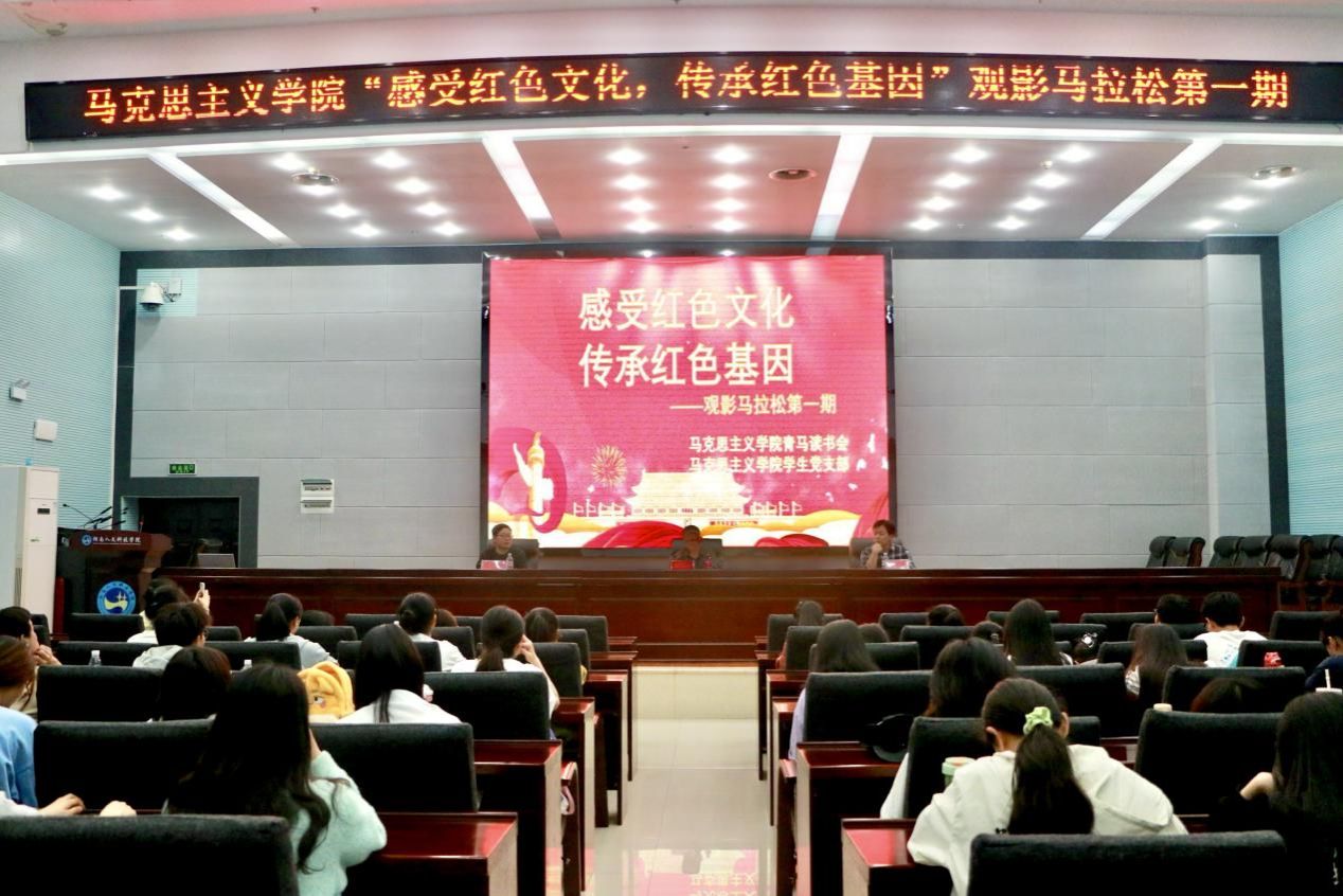 为大力弘扬红色文化,追寻红色记忆,传承红色基因,培育学生高尚情操,发挥红色文化育人效果,凝心聚力的作用,3月31日晚,马克思主义学院青马读书会在图书馆二报告厅举办“感受红色文化,传承红色基因”观影马拉松活动。此次活动由青马读书会成员李思怡同学主持,马克思主义学院副院长杨国辉、学工办主任张得才、青马读书会发起人谢科峰以及太阳成官网部分同学参加。