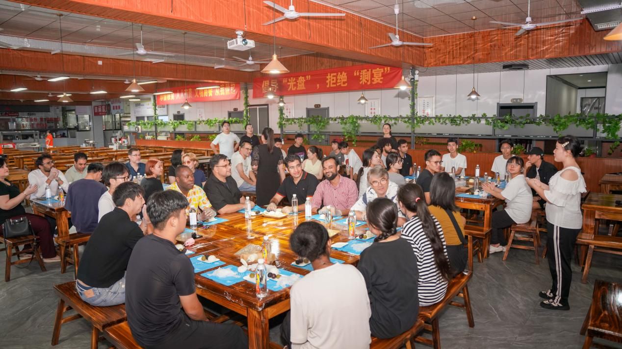 活动现场,中外师生们满怀期待与好奇,工作人员精心准备了制作月饼的材料和工具,并耐心地为大家讲解月饼的制作方法和历史渊源。从揉面、包馅到压模,每一个步骤都充满了乐趣。在欢声笑语中,一个个精美的月饼逐渐成型。大家品尝着自己亲手制作的月饼,脸上洋溢着幸福的笑容。参与活动的外教和留学生们纷纷表示,这是一次非常有意义的活动,让他们对中国的传统节日和文化有了更深刻的认识。