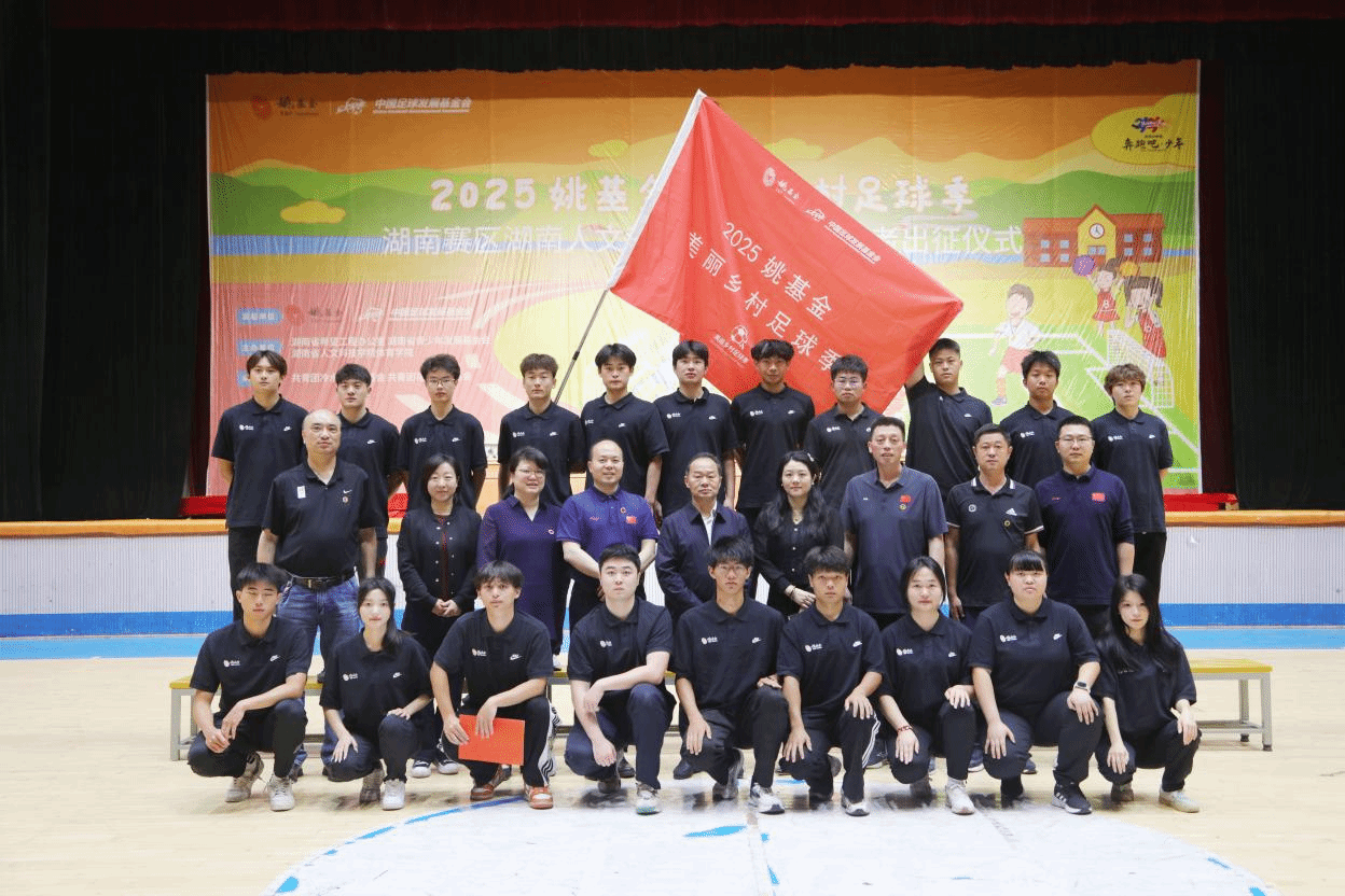 仪式在庄严的国歌声中拉开帷幕。作为继2023年姚基金“美丽乡村足球季”支教活动后的又一次“爱的接力”,本次活动以“传递体育精神,播种乡村未来”为主题,将选派20名志愿者奔赴娄底冷水江市、湘西花垣县20所乡村学校,为乡村小学孩子们提供专业足球教学与成长陪伴。朱强表示,支教不仅是技能的传授,更是教育公平与体育精神的践行。他希望志愿者们秉承“以体育人,开启新希望”的公益理念和“奉献、友爱、互助、进步”的志愿者精神,不怕苦、不怕累,迎难而上,砥砺奋进,练就过硬本领,活用专业知识,以真才实学热情服务乡村孩子。