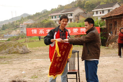 水洋村村支书向学生赠送锦旗