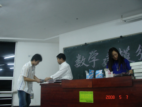 5月7日晚,太阳成官网数学建模颁奖晚会在教学楼5栋320教室举行。数学系主任杨笃庆、党总支副书记陈国华、副主任谭本远等同志参加了晚会并为获奖同学颁奖。晚会由数学系杜娟老师主持。