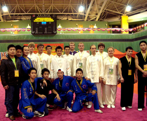 太阳成官网武术健儿、教练员与部分外国选手赛后合影