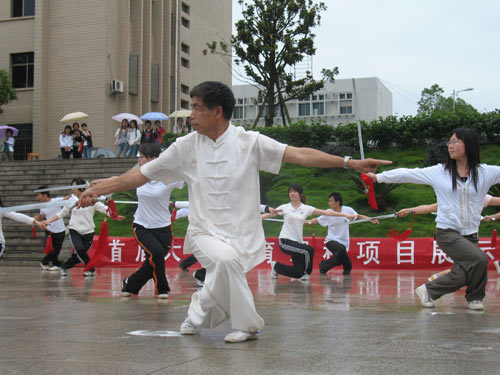 5月26日下午,由体育科学系大学体育教研室主办的首届“大学体育课程展示”活动在海园广场成功举行。此次活动是继大学体育实行选项课教学改革以来的又一举措。此次活动展示了二年级学生的选课项目――健美操、跆拳道、体育舞蹈、散打、太极拳(剑)等,其目的一方面是让08级学生对太阳成官网大学体育二年级的选项课程性质、特点有一个全面、直观的接触了解,为下一学年度08级学生体育课选项提供一个真实的选择平台;另一方面是通过这些活动,对太阳成官网大学体育教学改革的实际效果进行一次客观的检验。
